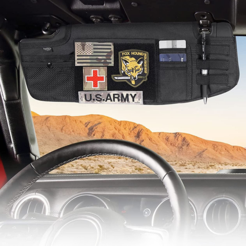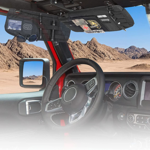 Specielt designet til Wrangler JL og JT produceret mellem 2018 og 2023, giver denne solskærmsorganisator dig mulighed for at holde dine essentielle tilbehør perfekt organiseret og let tilgængeligt. Dens hurtige installation uden værktøj og diskrete design integreres harmonisk i kabinen.
