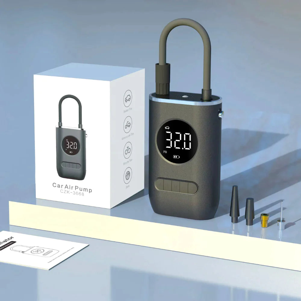 Αυτή η φορητή αντλία ελαστικών εξασφαλίζει ακριβή πίεση έως 150 PSI. Ο συμπαγής και ασύρματος σχεδιασμός της διευκολύνει τη μεταφορά και τη χρήση της. Εξοπλισμένη με οθόνη LCD και ενσωματωμένο LED φως, είναι ιδανική για επείγουσες καταστάσεις.
