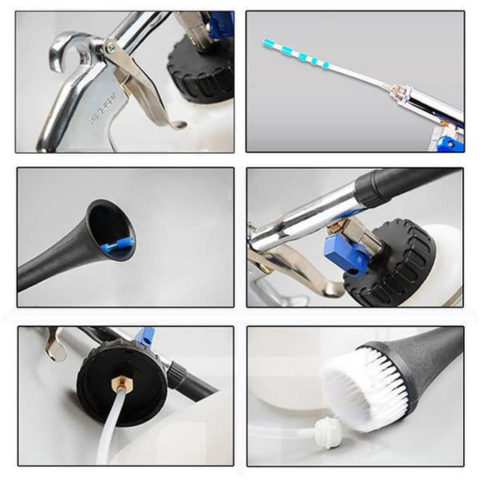 Este limpiador de alta presión permite una limpieza rápida y eficaz del interior y exterior del vehículo. Su boquilla cónica asociada a una acción rotativa apunta a la suciedad incrustada. Compatible con cualquier compresor de aire, alcanza fácilmente las zonas de difícil acceso.