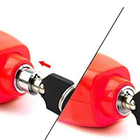 Ce dispositif bloque le levier de frein ou d’embrayage directement sur le guidon, empêchant tout déplacement non autorisé. Facile à installer et très dissuasif grâce à sa couleur vive.