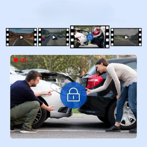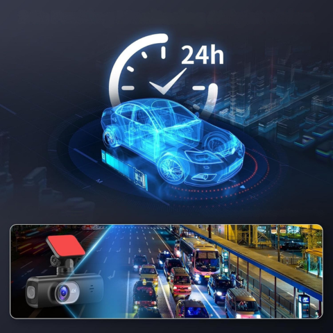 Dashcam med dubbel objektiv säkerställer fullständig täckning av vägen, både fram och bak. Den erbjuder avancerad nattvision för skarpa inspelningar, även i mörker. Med WiFi-anslutning och övervakning dygnet runt är du alltid kopplad till ditt fordon.