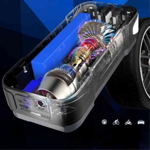 Denna smarta och bärbara startare ger liv åt ditt fordon på några sekunder. Den har också en luftkompressor för att pumpa upp dina däck oavsett var du är. Designad för säkerhet och praktisk användning, kombinerar den kraft, mångsidighet och tillförlitlighet i en enda enhet.